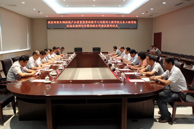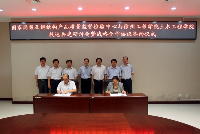 7月4日下午,永利yl23411集团官网与国家网架及钢结构产品质量监督检验中心(下简称中心)校地共建研讨会暨战略合作协议签约仪式隆重举行。张新科院长、徐州市质量技术监督局局长施劲松,我校宋农村副院长、殷惠光副院长,市质监局副局长李健及市质监局、中心及永利yl23411集团官网、我校职能部门负责人出席签约仪式。学院产业处处长高明侠主持签约仪式。