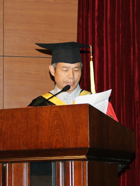 殷院长深情回顾了四年来同学们同学校一起奋发拼搏,开拓创新,不断发展变化,努力成长成才的经历,对同学们四年来的努力与付出表示了充分的肯定,并提出了三点殷切希望,一是希望同学们加强学习,开拓创新,把学校赋予的优良学风和创新精神延续到今后的工作和实践当中去;二是希望同学们加强道德修养,锤炼品格,早日成为栋梁之材;三是希望同学们心怀感恩,情系母校,一如既往的关心支持母校,为母校的建设发展贡献力量。最后,殷院长诚挚的邀请同学们常回母校看看,并祝同学们一帆风顺、前程似锦。