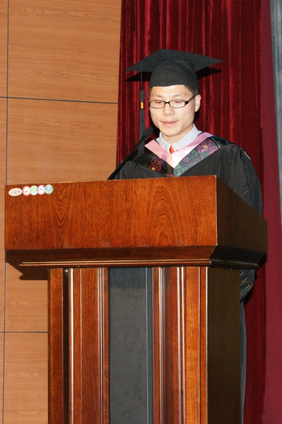宋浩同学代表全体毕业生表达了对母校的感恩和对辛勤培育他们的教师们的感激,并表示永远秉承“格物致知,敬业乐群”的校训和恩师们的谆谆教诲,用实际行动为学校争光。