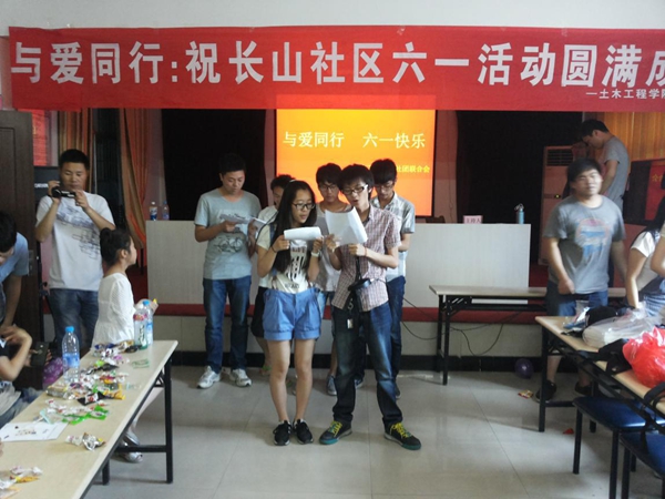 2014年5月31日,为了让长山社区的小朋友们度过一个难忘的节日,土木学院社团联合会全体成员前往长山社区与小朋友们一起举办了一场以庆“六一”为主题的交流联欢会。