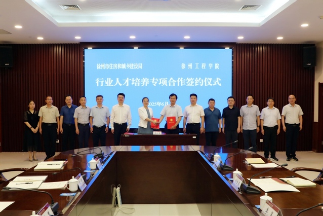 6月20日,我校与徐州市住房和城乡建设局行业人才培养专项合作签约仪式在中心校区举行。校党委书记刘洋,副校长姜慧、谭文轶和徐州市住建局局长张晨、副局长方成伟出席签约仪式。