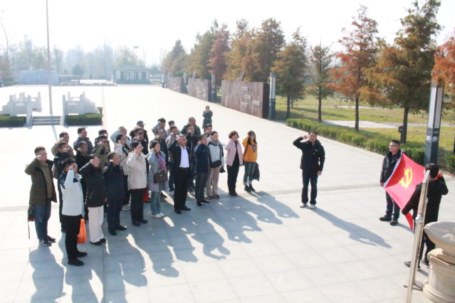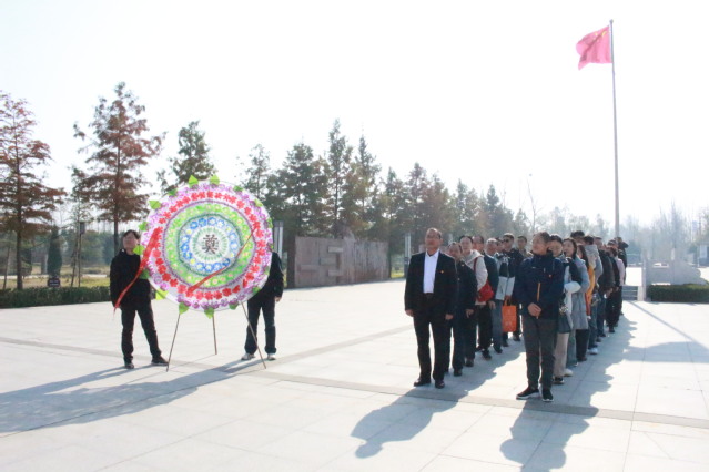 随后,党员队伍辗转前往新沂淮海战役十人桥纪念馆,继续追寻红色记忆。在十人桥纪念碑前全体党员整齐列队,佩戴党徽,神情肃穆。永利yl23411集团官网党委向纪念碑敬献花圈,寄托着对英雄烈士的深切哀思与崇高敬意。全体党员面向党旗,庄严重温入党誓词,表达对革命先烈的告慰。接着,党员们参观了淮海战役十人桥纪念馆,认真聆听了淮海战役期间解放军战士的英勇事迹,每一位党员再次接受了深刻的党性教育。