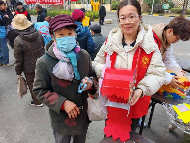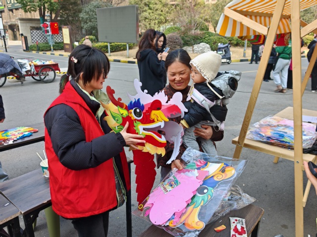 活动现场设置特色鲜明的服务区域。非遗糖画、手工面点等传统美食摊位前排起长龙,志愿者向居民讲解传统饮食文化;民俗手作区特别设置龙年主题DIY活动,孩子们在志愿者指导下拼接彩绘龙头,通过寓教于乐的方式感受传统文化魅力。公益理发区为社区老人提供义务服务,两名持证理发师在志愿者的帮助下运用专业技艺,为28位长者完成细致修剪。活动期间,志愿者们同步开展社区环境美化工作,清理公共区域垃圾并整理共享单车。